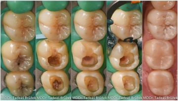 Následuje aplikace adhezivního systému a modelace výplně tak, aby odpovídala tvaru přirozeného zubu. V průměru trvá celý tento proces kolem 1 hodiny. Během jedné dvouhodinové návštěvy lze ošetřit 2 až 4 sousedící zuby. Při odstranění kazu a aplikaci výplně je vhodné použití zvětšení (dentální mikroskop, lupové brýle), které umožní přesnější práci.